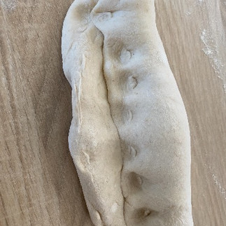 Nå må vi gi bollene et baguette utseende. Viktig å ikke slå all luften ut av deigen.