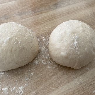 Ha litt mel på kjøkkenbenken og legg deigen over dit. Del deigen i 2 like store emner og form runde boller. Dekk boller og la de hvile i 5 min.